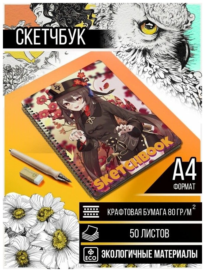 Отзывы на Скетчбук, Блокнот, A4 50 крафт листов Игра Genshin Impact - 2086