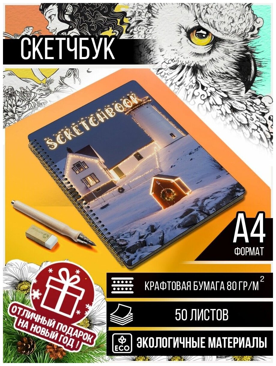 10 цен на Скетчбук, Блокнот, A4 50 крафт листов праздники - 5145