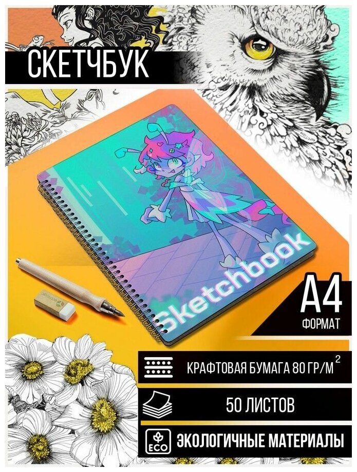 10 цен на Скетчбук, Блокнот, A4 50 крафт листов Девушка - 2162