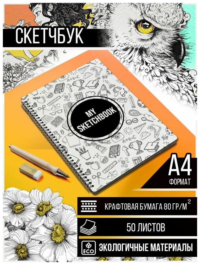 10 цен на Скетчбук, Блокнот, A4 50 крафт листов Учеба - 2159