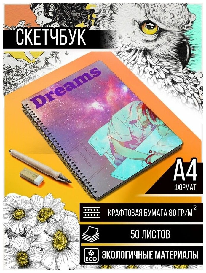 10 цен на Скетчбук, Блокнот, A4 50 крафт листов Dreams - 2024