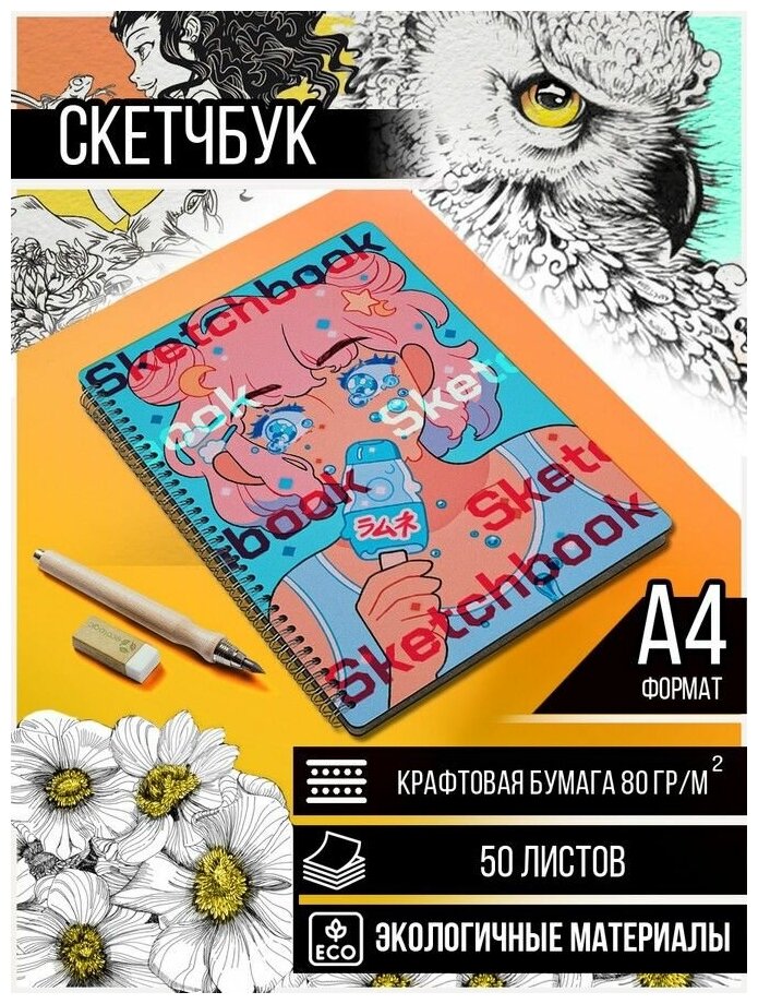 10 цен на Скетчбук, Блокнот, A4 50 крафт листов Девушка - 20128