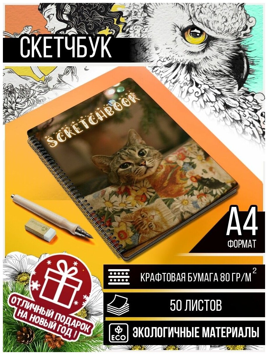 Скетчбук А4 крафт 50 листов Блокнот для рисования мемы коты кот с бананом милота - 1022