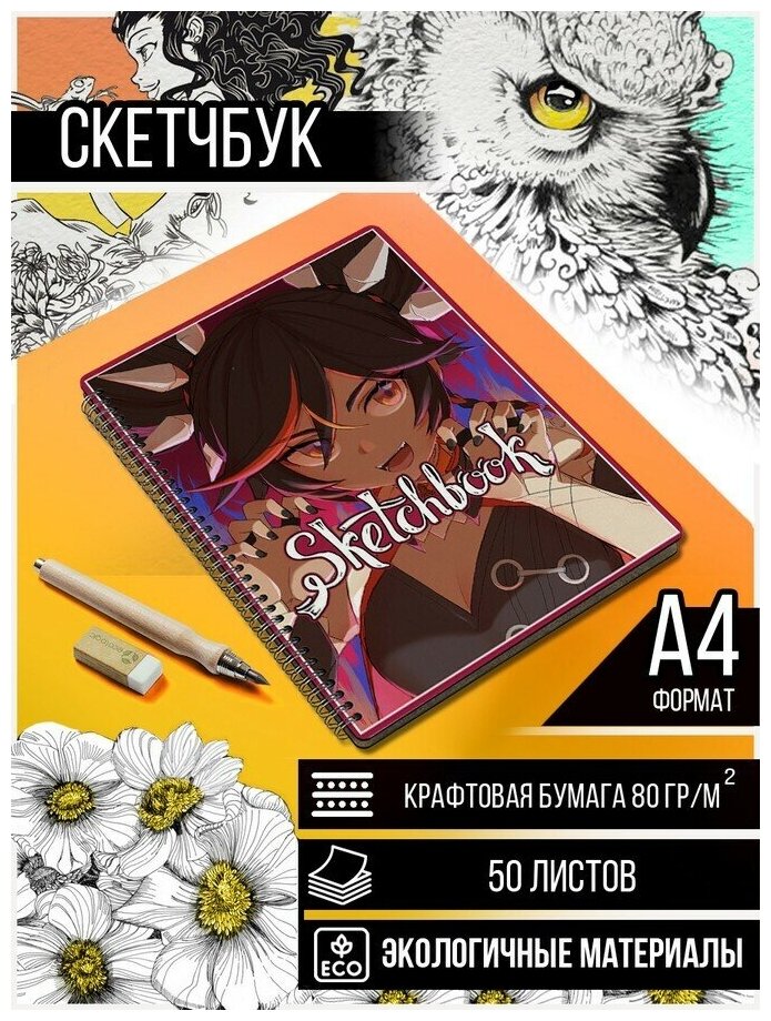 Скетчбук, Блокнот, A4 50 крафт листов Genshin Impact - 342 информация: