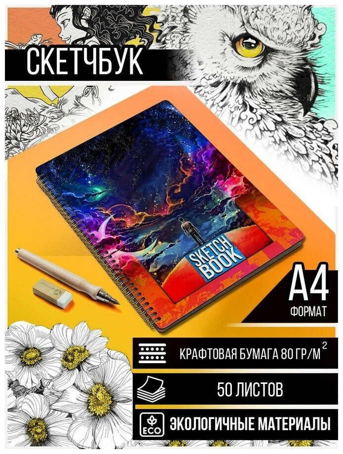 Скетчбук, Блокнот, A4 50 крафт листов космос бесконечнаяселенная - 451 информация: