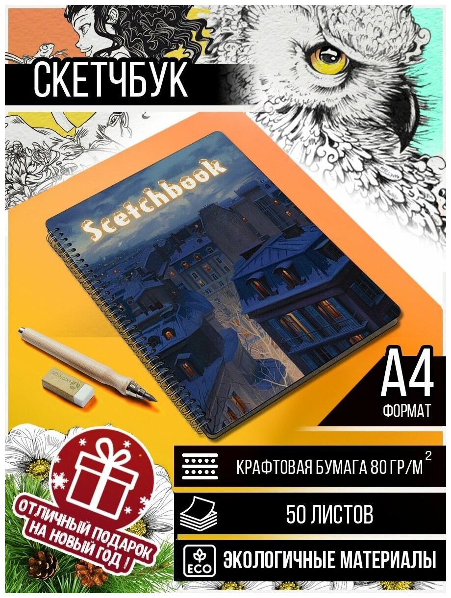 Скетчбук, Блокнот для рисования A4 50 крафт листов праздники - 5029 информация: