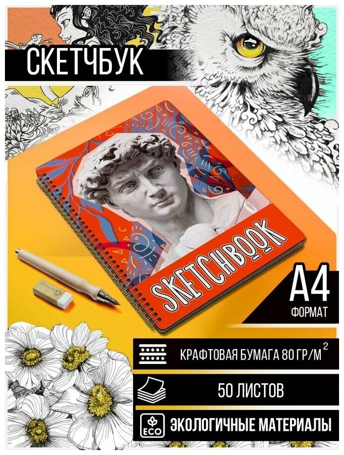 10 цен на Скетчбук, Блокнот, A4 50 крафт листов школа - 3204