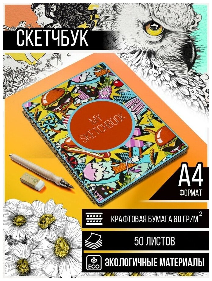 10 цен на Скетчбук, Блокнот, A4 50 крафт листов еда - 314