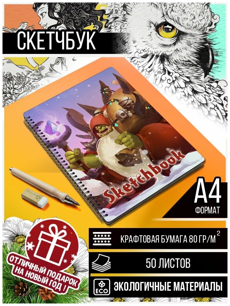 10 цен на Скетчбук, Блокнот, A4 50 крафт листов праздники - 5186