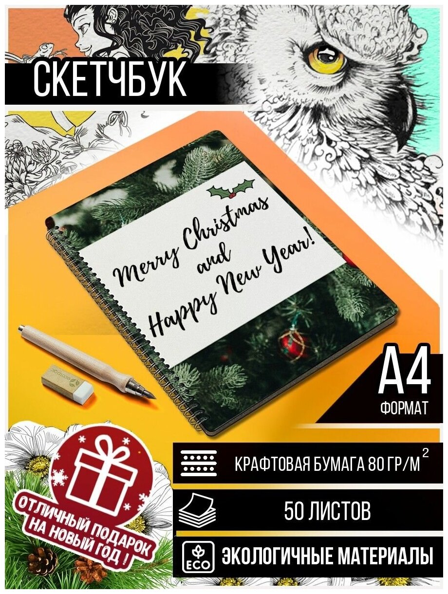 10 цен на Скетчбук, Блокнот, A4 50 листов с принтом праздники - 5047