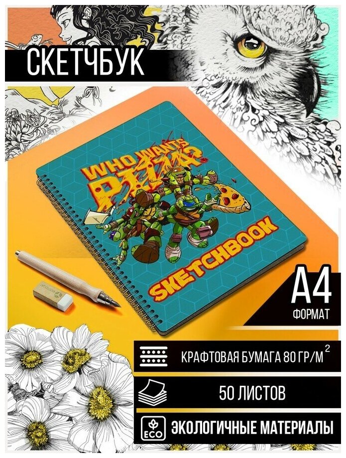 10 цен на Скетчбук, Блокнот, A4 50 крафт листов черепашки ниндзя - 1257