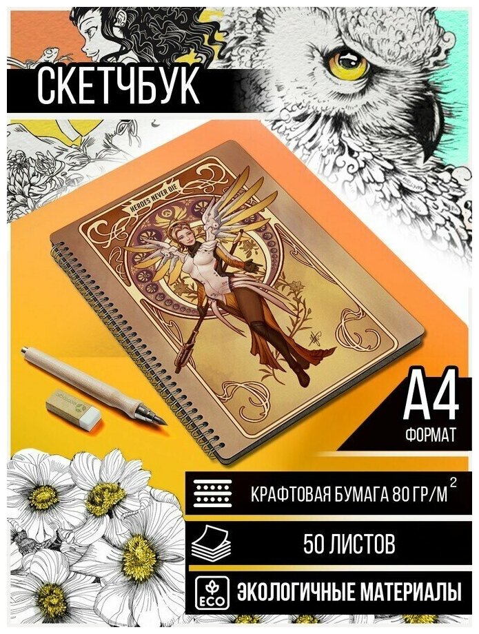 10 цен на Скетчбук, Блокнот, A4 50 крафт листов игры овервотч - 1073