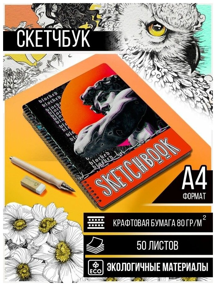 10 цен на Скетчбук, Блокнот, A4 50 крафт листов школа - 3243