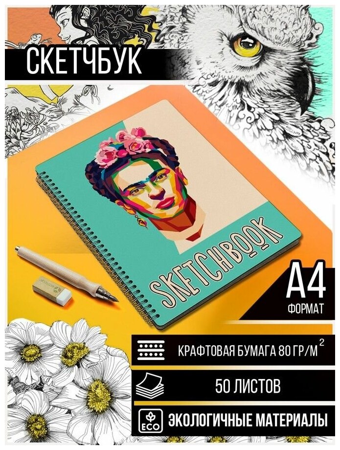 10 цен на Скетчбук, Блокнот, A4 50 крафт листов школа - 3285