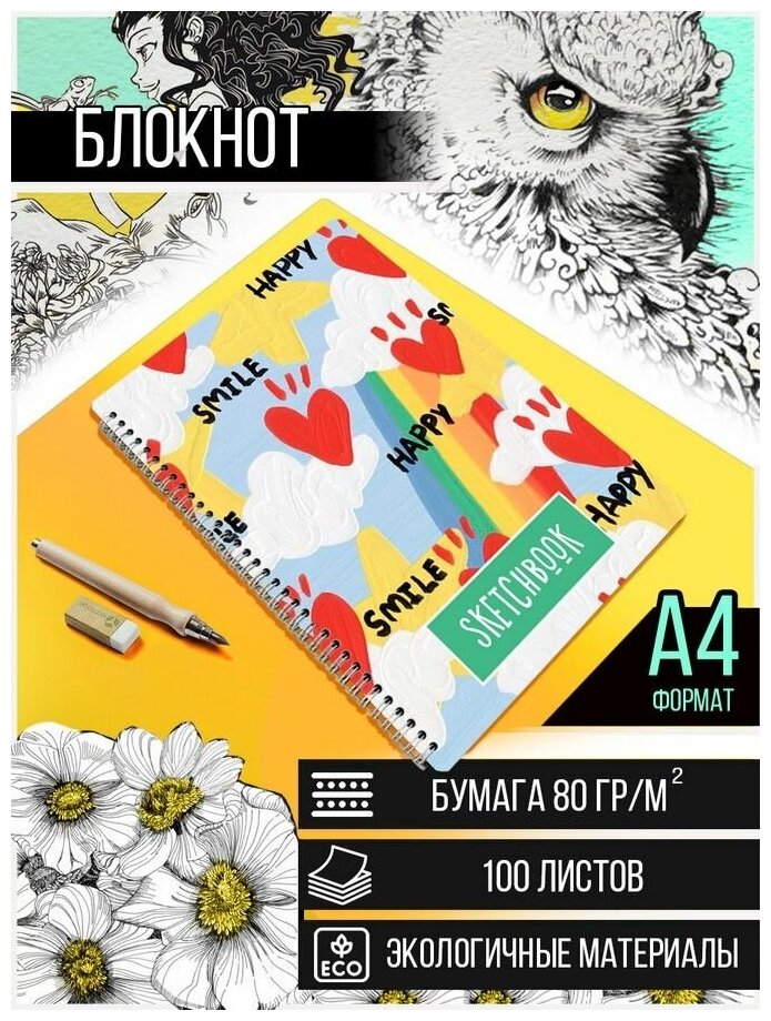 10 цен на Скетчбук, Блокнот, A4 50 листов астракция Принт - 3092