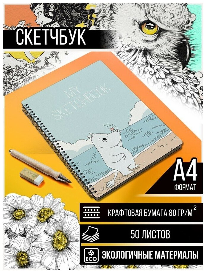 10 цен на Скетчбук, Блокнот, A4 50 крафт листов муми тролли - 1088
