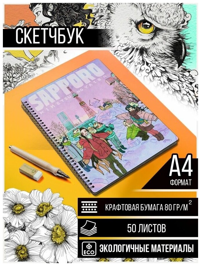 Отзывы на Скетчбук, Блокнот, A4 50 крафт листов Аниме Demon Slayer - 2107