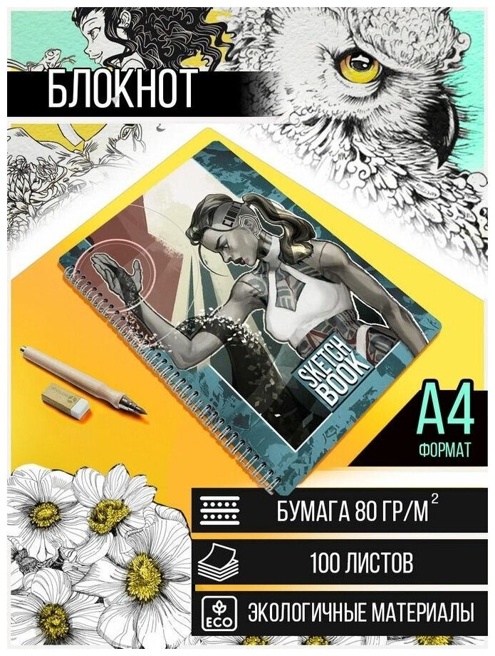 10 цен на Скетчбук Блокнот, A4 50 листов с деревянной обложкой игра mass effect - 458