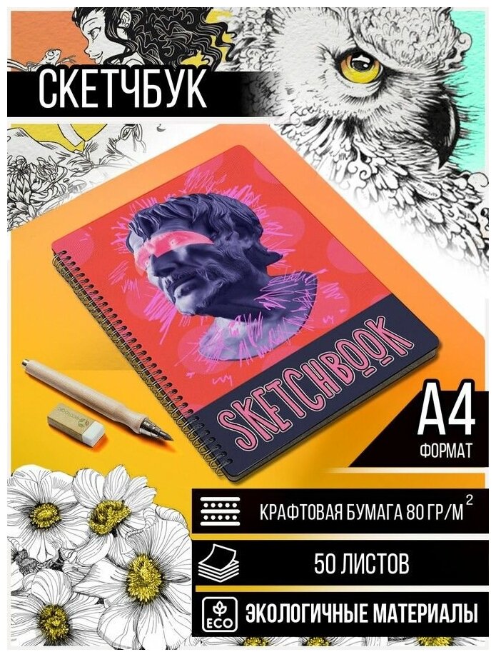 10 цен на Скетчбук, Блокнот, A4 50 крафт листов школа - 3267
