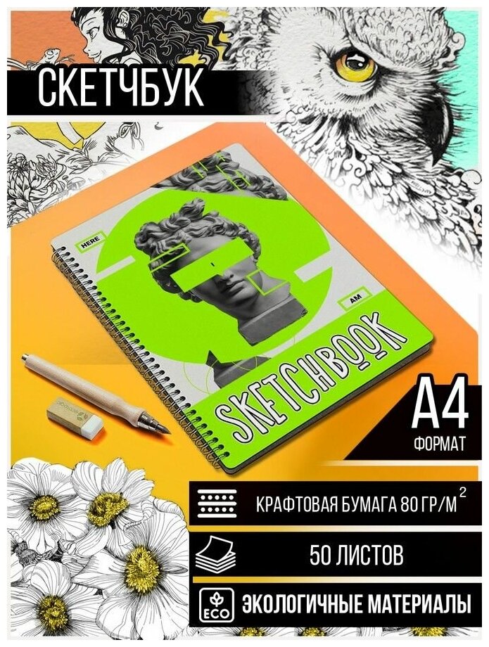 10 цен на Скетчбук, Блокнот, A4 50 крафт листов школа - 3208