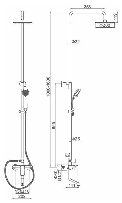 Душевая стойка Ledeme со смесителем и тропическим душем L72418 информация: