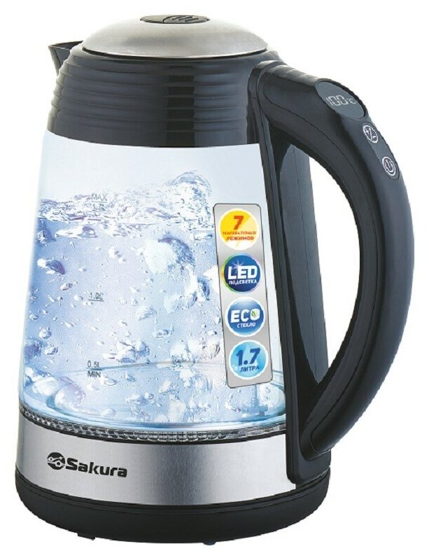 Чайник электрический SAKURA SA-2729DBK (1.7) стекл информация: