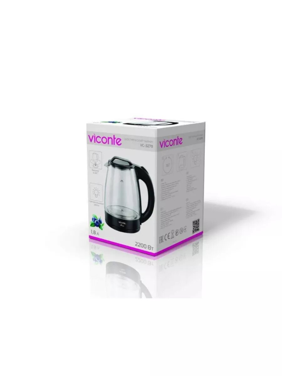 Чайник Viconte электрич. 1,8л термостойк. стекло, 2200Вт, возможность вращения чайника на 360°, шкала уровня воды, закр.нагрев.эл-т (1) VC-3278