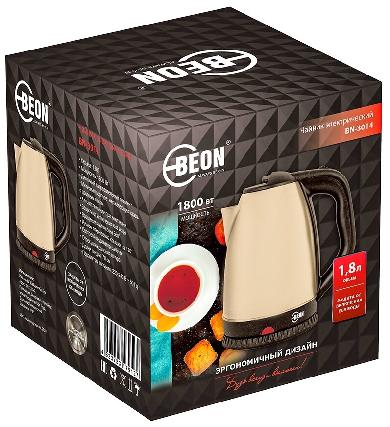 Чайник электрический BEON BN-3011 1,8 л, 2200 Вт, бежевый