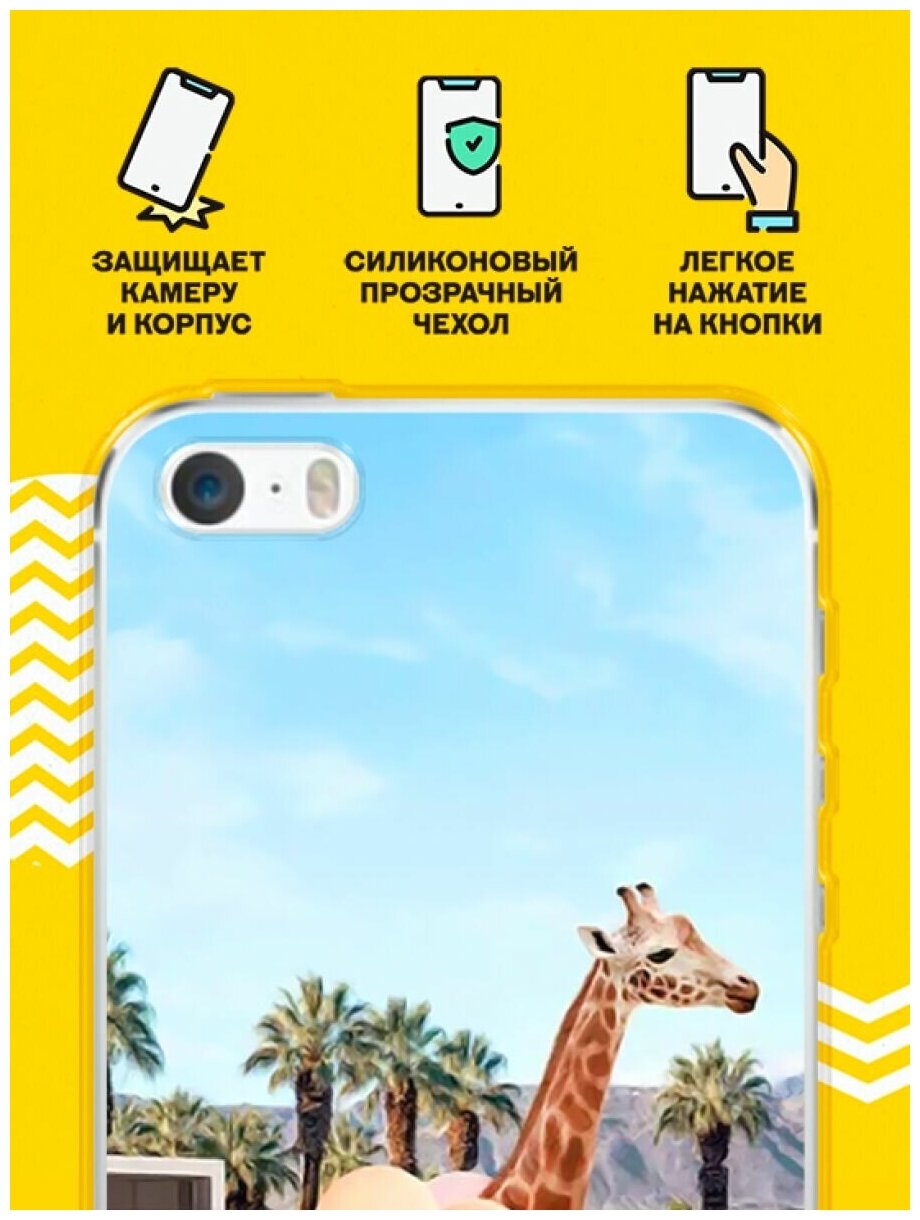 Отзывы на Силиконовый чехол на Apple iPhone 5/5s/SE Жираф с шарами / для Эпл Айфон 5/5C/CE