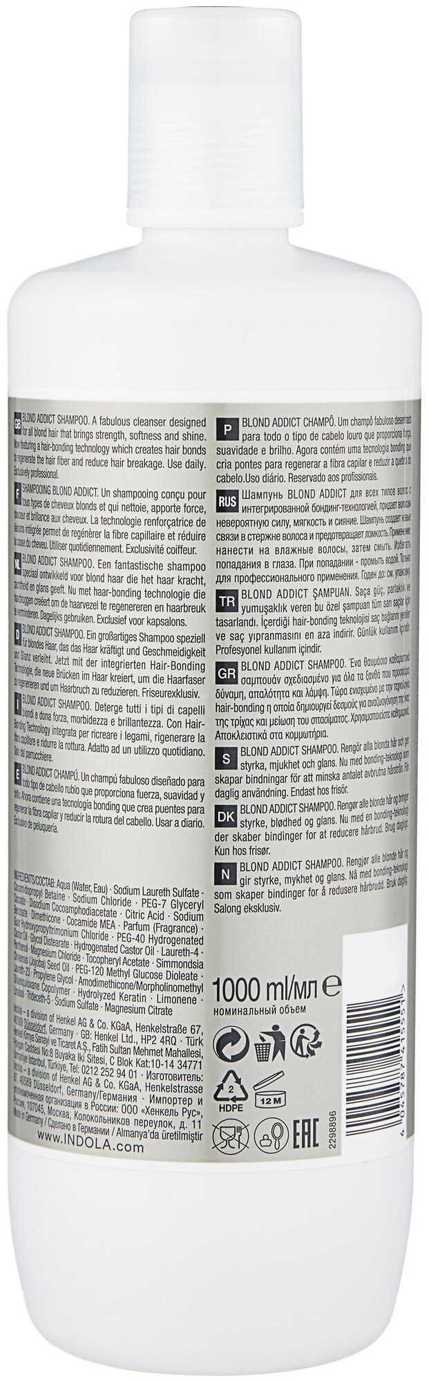 Indola, BLOND ADDICT Шампунь для всех типов волос 1000 мл информация: