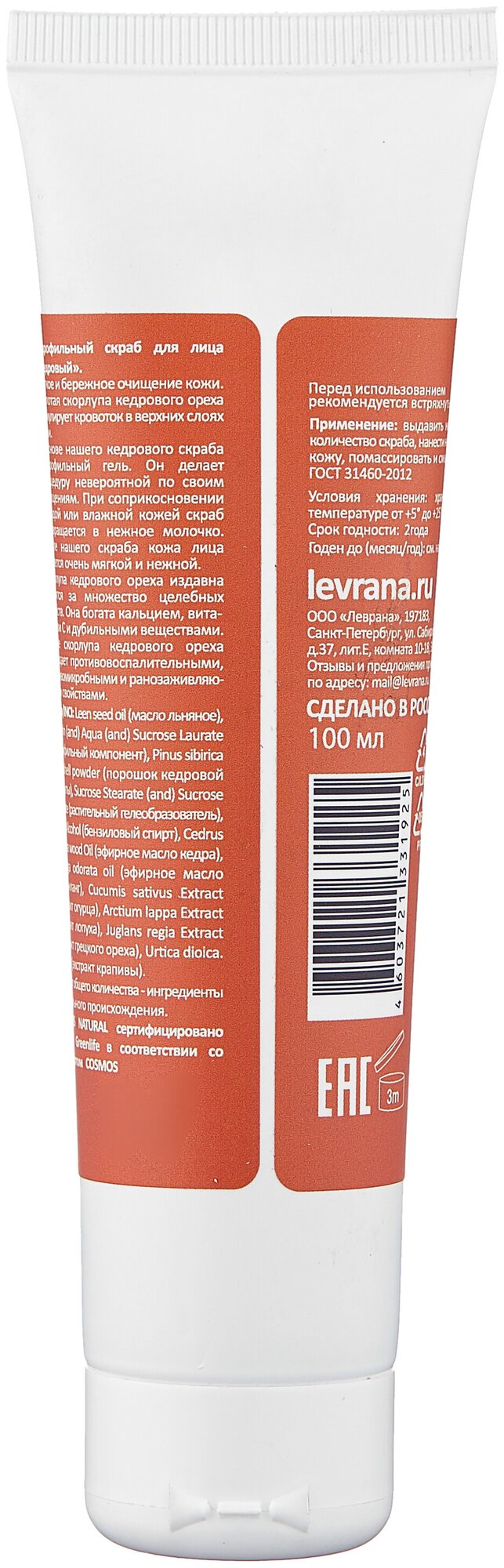 Levrana скраб для лица Кедровый, 100 мл