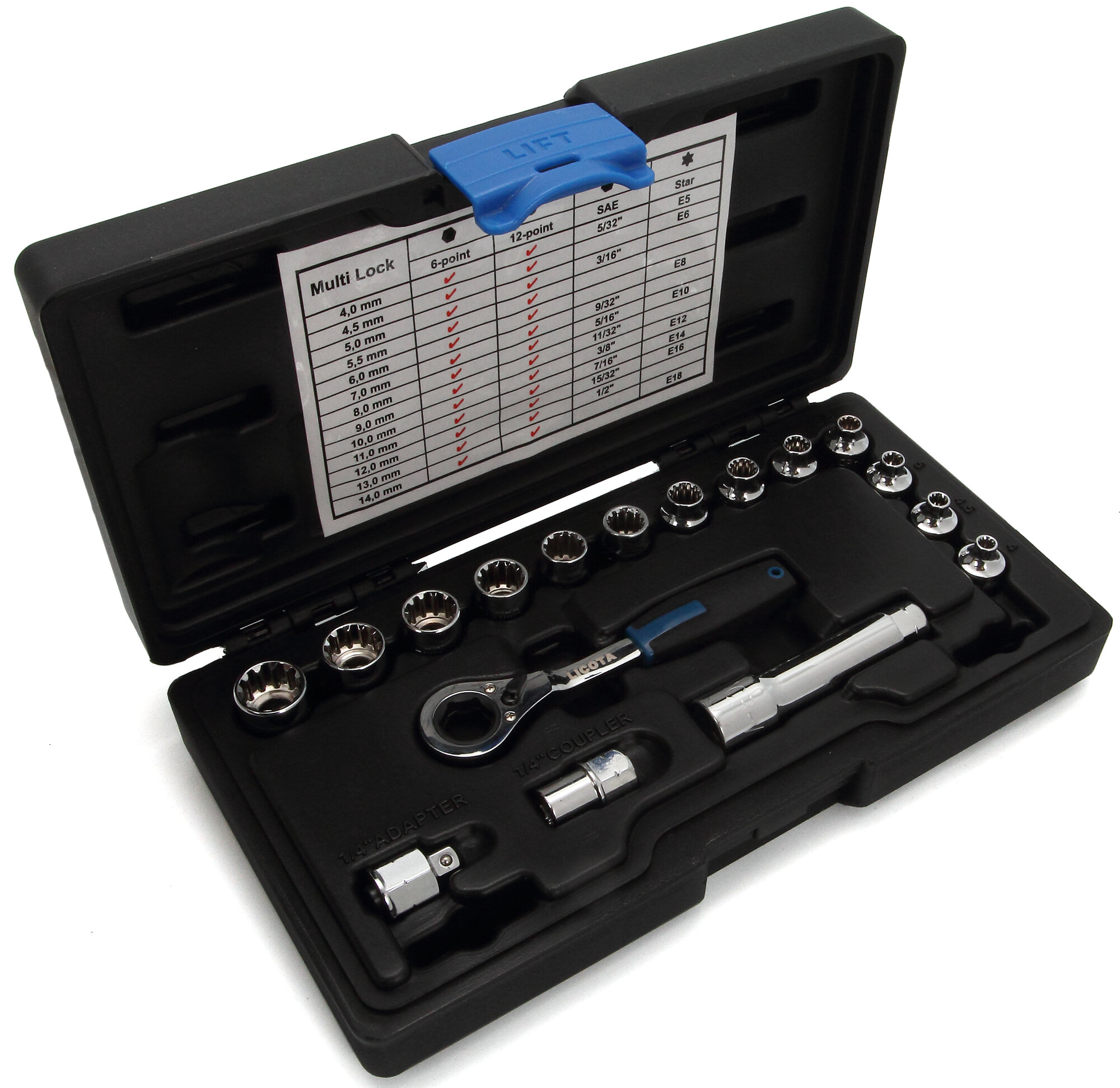 LICOTA ALK-1005P Licota - Набор торцевых головок проходных с аксессуарами 13 мм 17 пр.