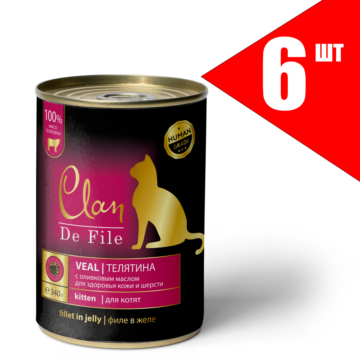 Влажный корм для котят CLAN De File, беззерновой, с телятиной 6 шт. х 340 г информация: