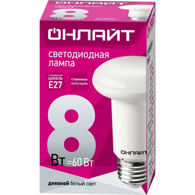 Отзывы на Лампа светодиодная 61 143 OLL-R63-8-230-6.5K-E27 8Вт онлайт 61143