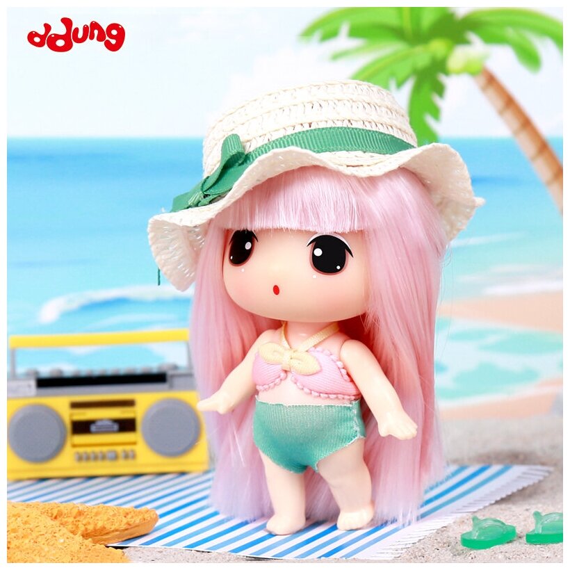 10 цен на Коллекционная Игрушка, Кукла для Девочек, DDung из Пляжной Серии, с Аксессуарами, с Розовыми Волосами Летний Пупс, Дун Данг, 11 см FDE1912-6