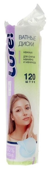 Ватные диски Lure! нежные, для снятия макияжа и маникюра, 120 шт., пакет
