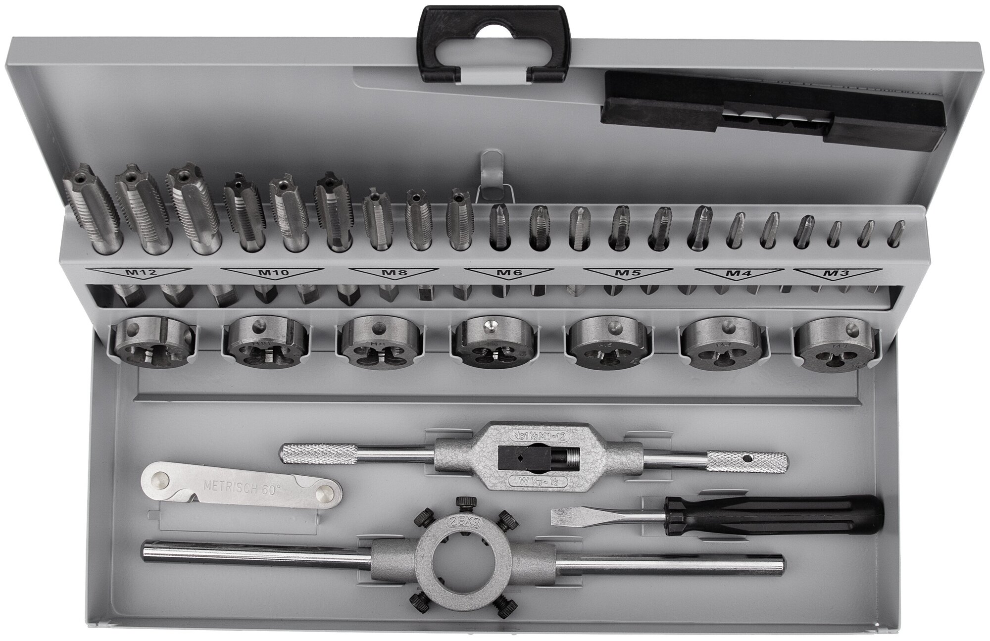 Отзывы на Набор метчиков и плашек, М3-М12, с воротком, 32 предмета в кейсе, NORGAU Industrial