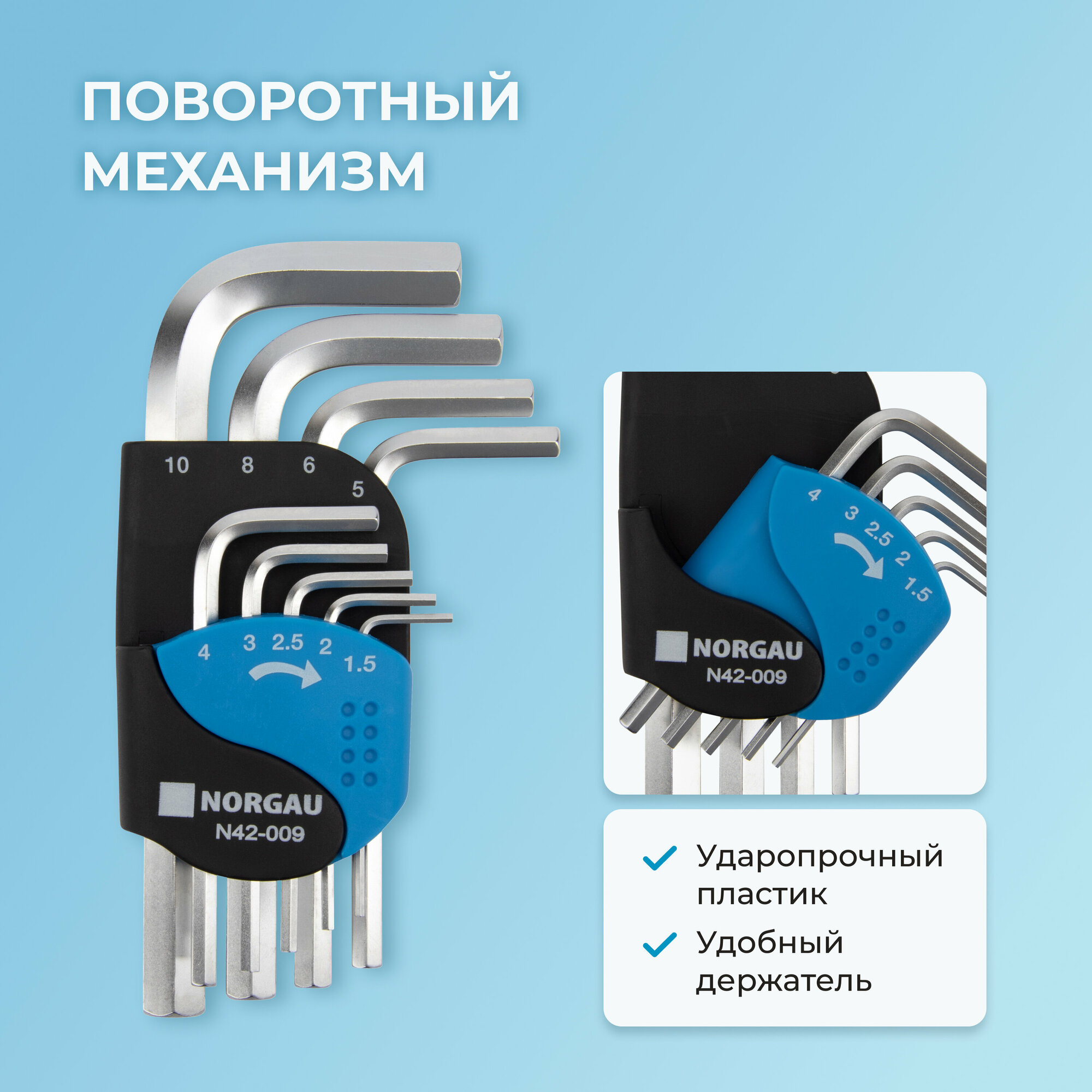 Набор шестигранных хромированных ключей NORGAU Industrial в поворотном держателе с маркировкой, 9 шт 2 203 ₽
