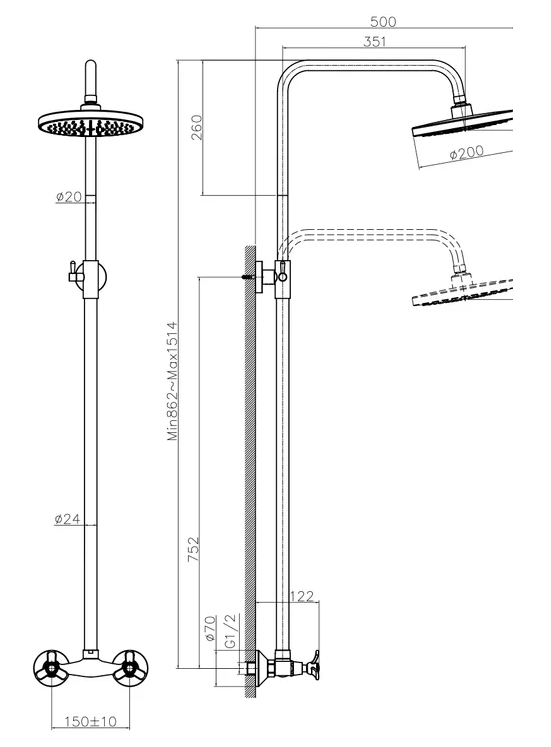 Смеситель Rossinka Q02-44 для душа с регулируемой высотой штанги и лейкой информация: