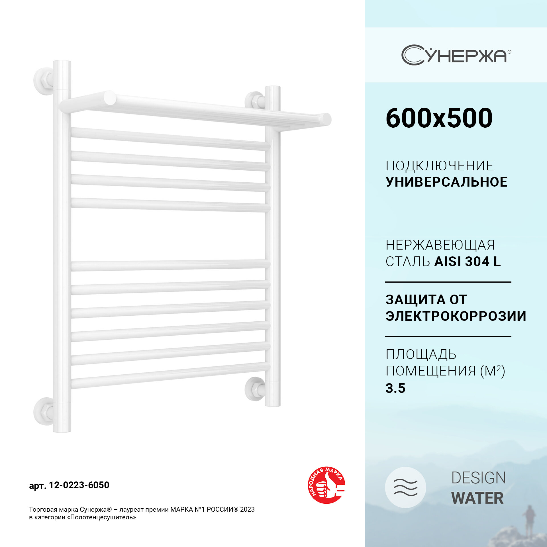 Полотенцесушитель водяной Сунержа Богема+ с полкой 600x500, белый 12-0223-6050 32 200 ₽