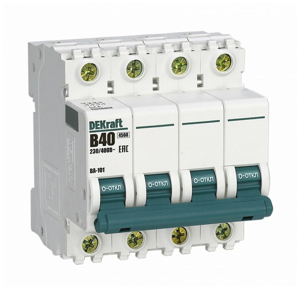 Автоматический выключатель Dekraft BA-101 (11046DEK) 4Р 40А тип В 4,5 кА 230-400 В на DIN-рейку информация: