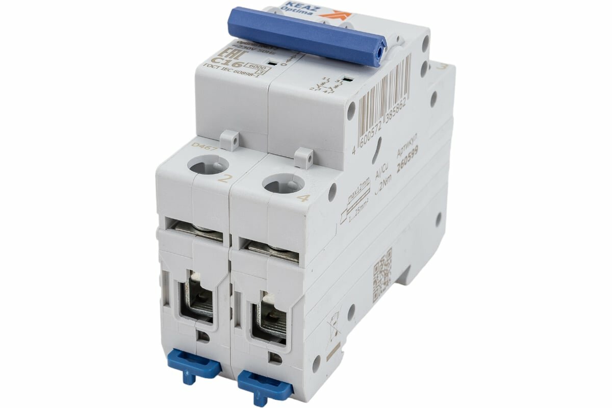Выключатель автоматический 2-пол. (2P) 16А C 6кА OptiDin BM63 КЭАЗ информация: