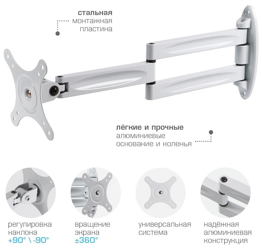 Кронштейн для телевизора настенный наклонно-поворотный KROMAX CORBEL-2 / до 34 дюймов / vesa 100x100