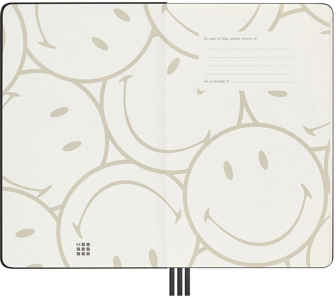 Блокнот Moleskine LE SMILEY LESMILEYNTBKCLT Large 130х210мм обложка текстиль 240стр. кремовые страницы линейка твердая обложка подар.кор. черный 4 564 ₽