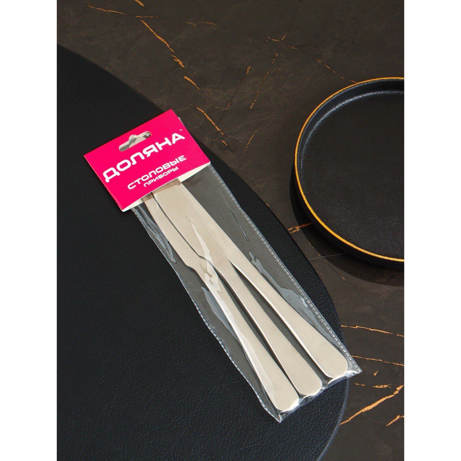 10 цен на Набор ножей столовых Доляна, h=23 см, толщина 5 мм, 410 сталь, 3 шт