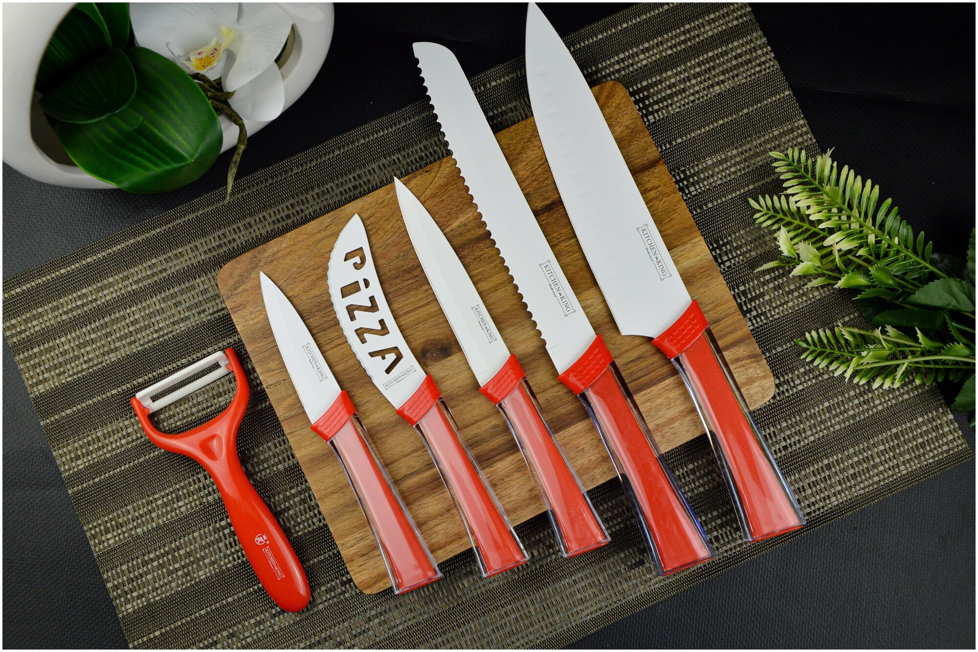 | Типы ножей в наборе | нож для овощей, нож для пиццы, нож для хлеба, универсальный нож, шеф-нож |
