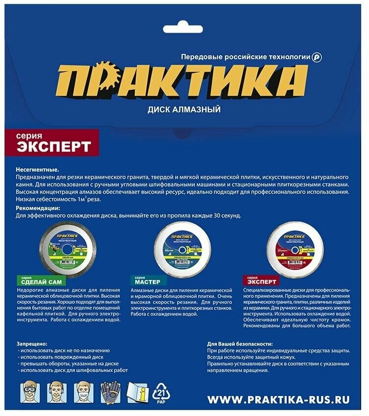 Диск алмазный несегментный ПРАКТИКА "Эксперт-керамогранит" 034-793