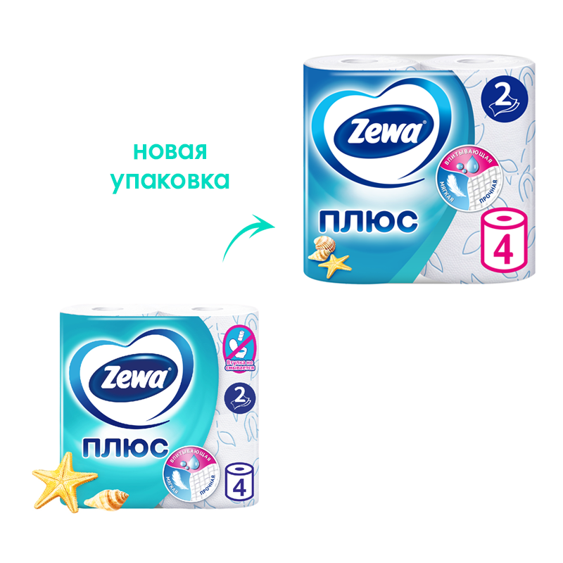 Zewa туалетная бумага Plus 2-х слойная Океан 4шт