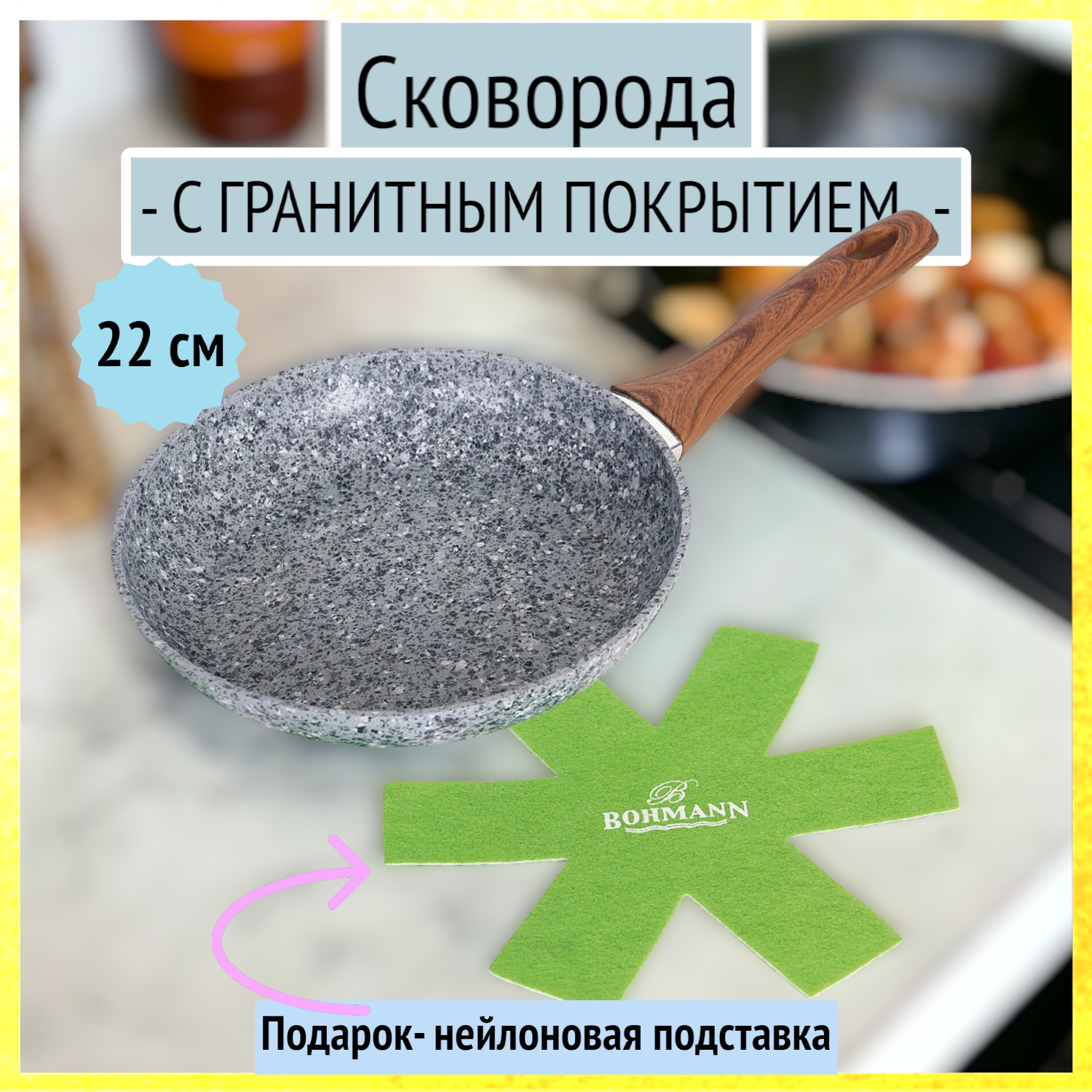 Сковорода BH 1015-22GRN / 2 пр./Нейлоновая подставка(протектор)/ 22см (х10) информация: