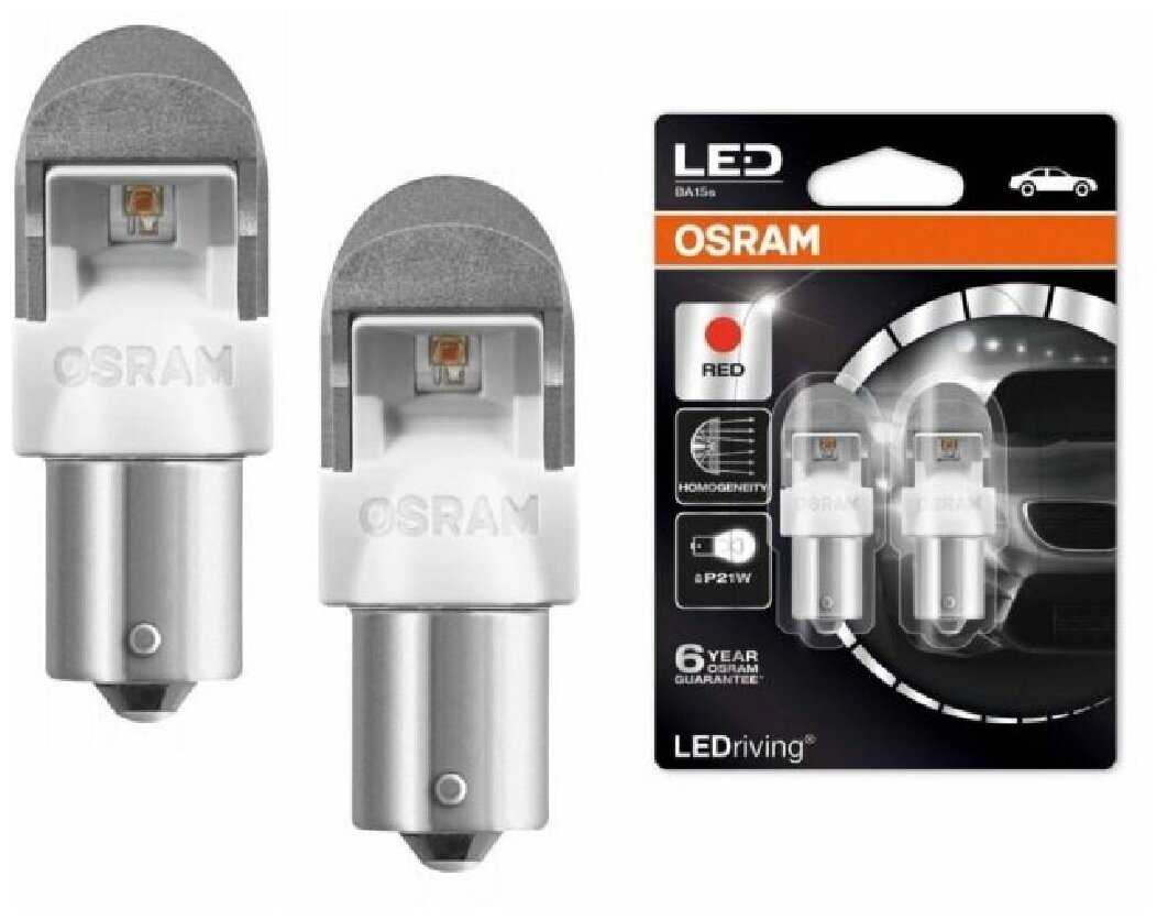 10 цен на Автолампа OSRAM P21W BA15S LED RED 2шт 12V, 1, 10, 50 7556R-02B